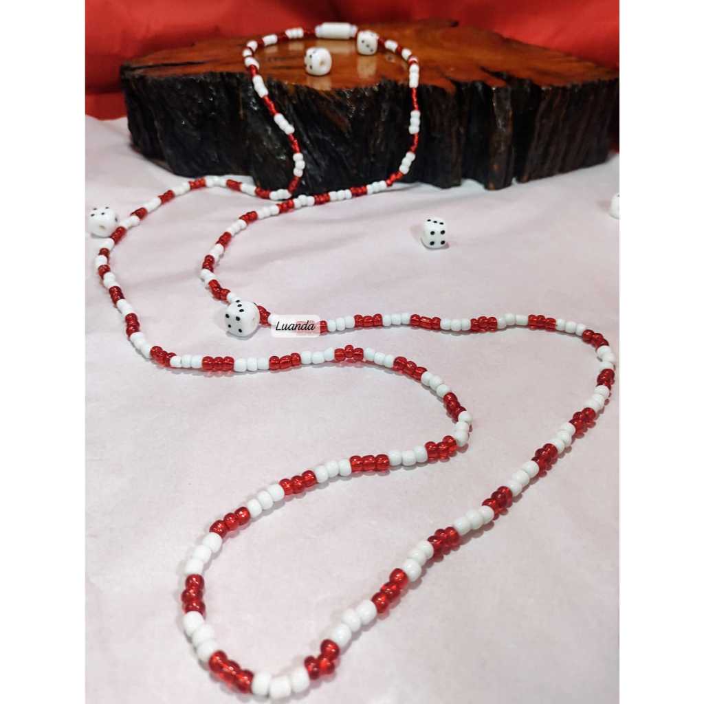 Guia Malandro Zé Pelintra Malandragem Navalha Maria Miguel Fio de Conta Miçangas Vermelho Branco Umbanda Candomblé