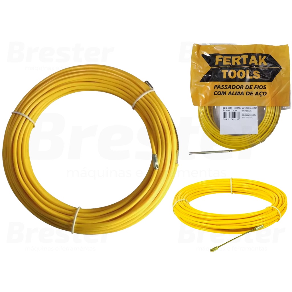 Olá, Bem vindo a Distribuidora Brester. Trabalhamos com uma grande variedade de ferramentas elétricas e manuais, descartáveis, eletroeletrônicos, artigos para casa, artigos de petshop e outros. Aqui você encontrará Produtos Originais, Nota Fiscal, Pronta Entrega e Envio Imediato! * Características do produto * Guia Passa Fio Sonda De Pvc Alma De Aço Profissional 20 Mts O passa fio Fertak é uma ferramenta indispensável para qualquer eletricista. Este aparato serve para trespassar a distribuição elétrica de um imóvel, através dos eletrodutos (conduites) de forma simples e eficaz. O Passa Fio com Alma de Aço Fertak desliza facilmente pela tubulação elétrica embutida em paredes, tetos e chão, sem danificar a superfície do cabo nem deixar resíduos depois de aplicado. Ideal para pré-passagem de fios tanto em tubulações industriais quanto comerciais e residenciais. Produto de qualidade profissional, que pode ser utilizado em serviços de instalação em geral. Indicado principalmente para eletricistas e técnicos instaladores de linhas de telecomunicação. O dispositivo de metal, contido em uma das pontas do produto, permite a amarração dos fios a serem passados. Características Técnicas: > Comprimento Do Passador De Fios: 20m > Diâmetro Do Passador de Fios: 3,6mm > Alma de Aço > Cor Do Passador: Amarelo > Guia Em Metal Flexível > Não Deixa Resíduos Após Aplicado > Não Danifica a Superfície do Cabo - Marca: Fertak - Garantia: 3 meses contra defeitos de fabricação Vantagens de comprar na Brester: - Nota fiscal para Pessoa Física e Pessoa Jurídica. - Produto novo, com garantia de fábrica. - Produto a pronta entrega. - Envio em até 24hs em dias úteis após confirmação do pagamento. Obrigado por escolher a Brester Máquinas.