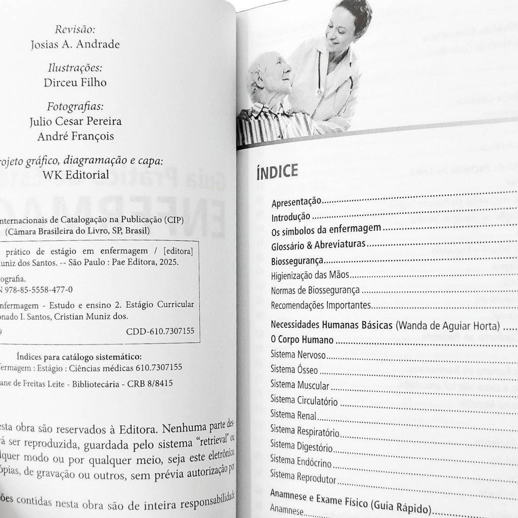 Guia Prático de Estágio em Enfermagem O presente guia tem como objetivo acompanhar o estudante, técnico e profissional de enfermagem em seu dia a dia. Servindo como referência clara e precisa para o desenvolvimento de suas atividades profissionais. Sem a pretensão de esgotar o tema, busca oferecer um referencial prático que os respalde durante os estágios acadêmicos e também na prática profissional Nossa expectativa é que ele se torne um companheiro inseparável, de abordagem compreensiva, sempre pronto a esclarecer dúvidas e respaldar cada cuidado, de forma a garantir conforto e bem-estar aos pacientes, favorecendo no cotidiano do cuidar em enfermagem.