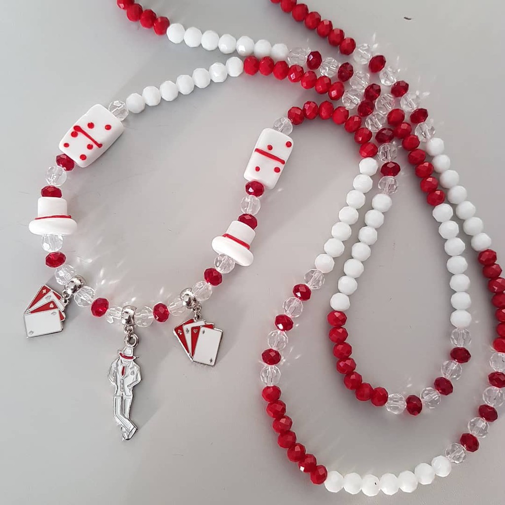 Guia Seu Zé Comprimento: 120cm Código: TS053 Contém: Contas em Cristais 8mm 3 Pingentes 4 Pingentes em Murano 1 Firma em Cristal