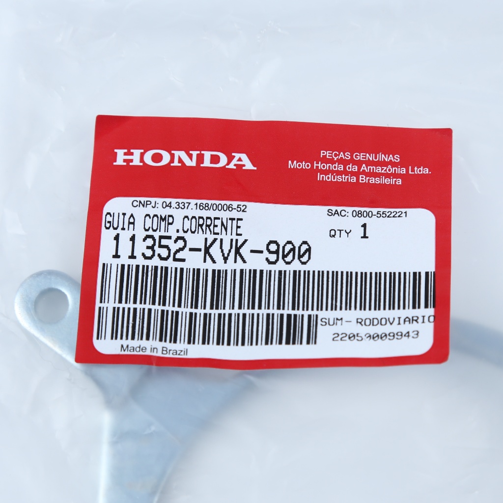 GUIA DA TAMPA DO PINHÃO ORIGINAL HONDA CÓDIGO HONDA: 11352-KVK-900 APLICAÇÕES: CB300R: 2010 a 2015 XRE 300: 2010 a 2023 Descrição do Produto: Este Guia da Tampa do Pinhão é uma peça original Honda, desenvolvida para garantir o perfeito funcionamento do sistema de transmissão de sua motocicleta. Com a qualidade e durabilidade que só uma peça genuína Honda oferece, esta peça assegura o ajuste preciso e a performance ideal da sua moto. Características e Benefícios: Peça original Honda: A garantia de qualidade, desempenho e durabilidade. Fabricada para encaixe perfeito: Proporciona a instalação fácil e segura em modelos selecionados da CB300R e XRE 300. Ideal para manutenção: Peça essencial para substituir a tampa do pinhão com precisão, evitando desgastes ou danos ao sistema. Durabilidade e resistência: Desenvolvida para suportar o uso constante e as condições adversas de pilotagem, mantendo a performance da moto. Informações adicionais: Produto novo e original Honda Acompanham nota fiscal em todas as nossas vendas Garantia de 90 dias contra defeito de fabricação Devolução apenas na embalagem original e sem sinais de uso Instalação recomendada apenas por profissional qualificado Atenção: Frete promocional: Aproveite para adicionar mais peças ao seu carrinho e economizar no envio Temos todos os produtos anunciados à pronta entrega Atendimento ao cliente: Nossa equipe está à disposição para esclarecer todas as suas dúvidas, de segunda a sexta-feira, das 8:00 às 18:00h. MOTO MATSUO A sua concessionária Honda, pioneira na distribuição de peças originais Honda desde 1973.