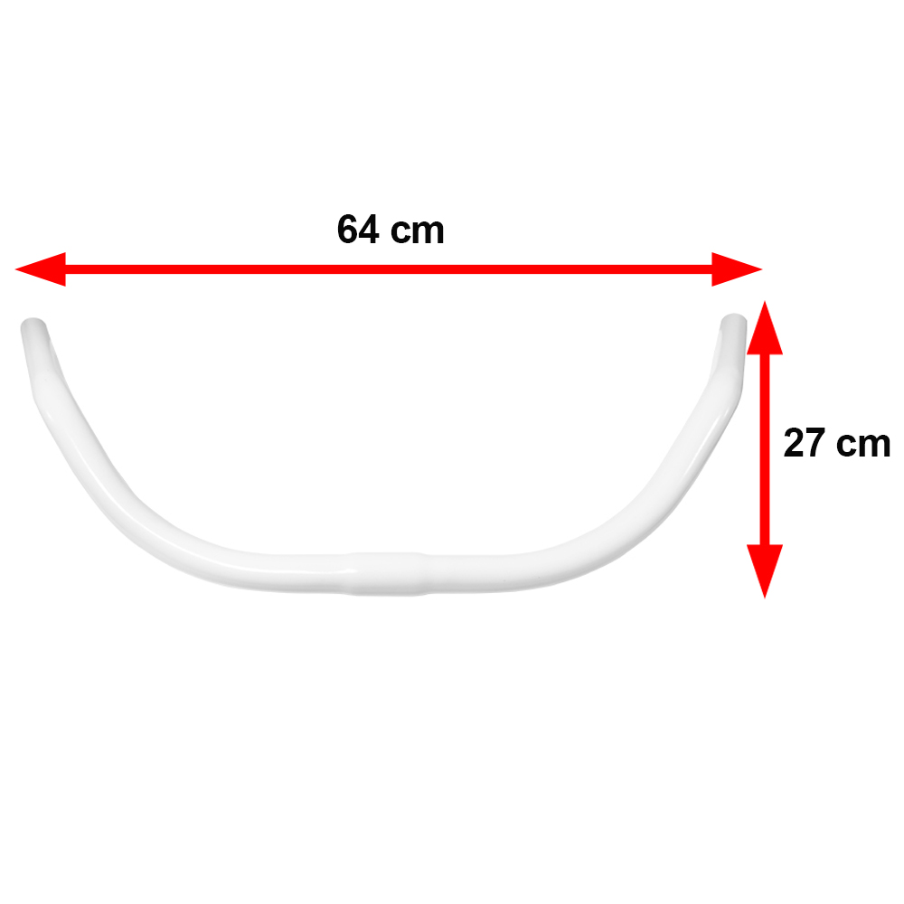 Guidão DINIZ BEACH AÇO (GUIDÃO CAIÇARA). Descrição: Guidão para mesinha 25.8. Possui 27 cm de altura entre a base e as pontas do guidão. Recuo para traz de 20 cm. Comprimento: 640 mm (64 cm). Material: Aço. Peso: 680gr