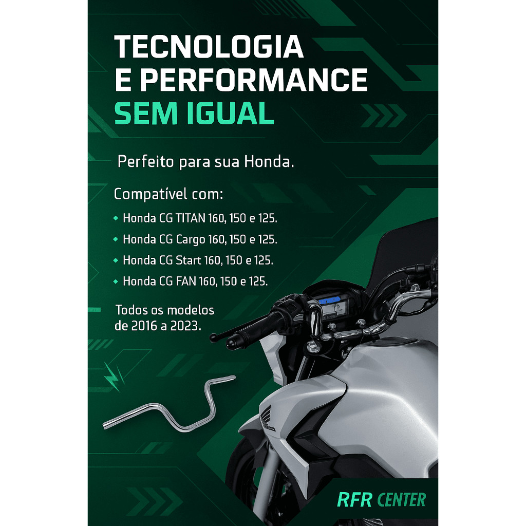 🔧 Guidão Moto Cargo CG Fan Titan 125/150/160 Cromado com Suporte para Pesinho ✅ Aço de alta qualidade para maior resistência ✅ Excelente acabamento para fácil instalação ✅ Espessura de 1,9 mm ✅ Cromagem de alto padrão ✅ Possui rosca para fixação de pesinho 📌 Compatível com os modelos – Honda CG Titan – Honda CG Fan – Honda CG Start – Honda CG Cargo – Honda CBX 200 – Yamaha YBR 125 – Yamaha YBR 125 Factor 📦 Conteúdo da embalagem – 1x Guidão Cromado ⚠️ Importante – Não acompanha pesinhos da PCX – Enviado com rosca para fixação do peso ❓ Dúvidas? Nossa equipe está disponível para responder no campo de perguntas 💬 Problemas após a compra? Fale conosco pelo chat da Shopee antes de abrir uma reclamação 🙏 Agradecemos pela sua visita e preferência
