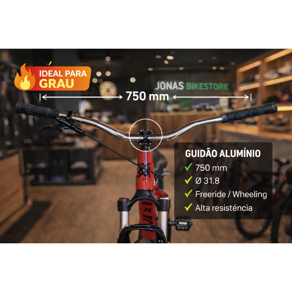 Guidão Voador Alumínio 750mm | Grau de Bike Wheeling Freeride Reforçado