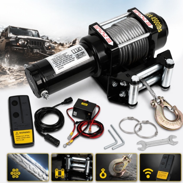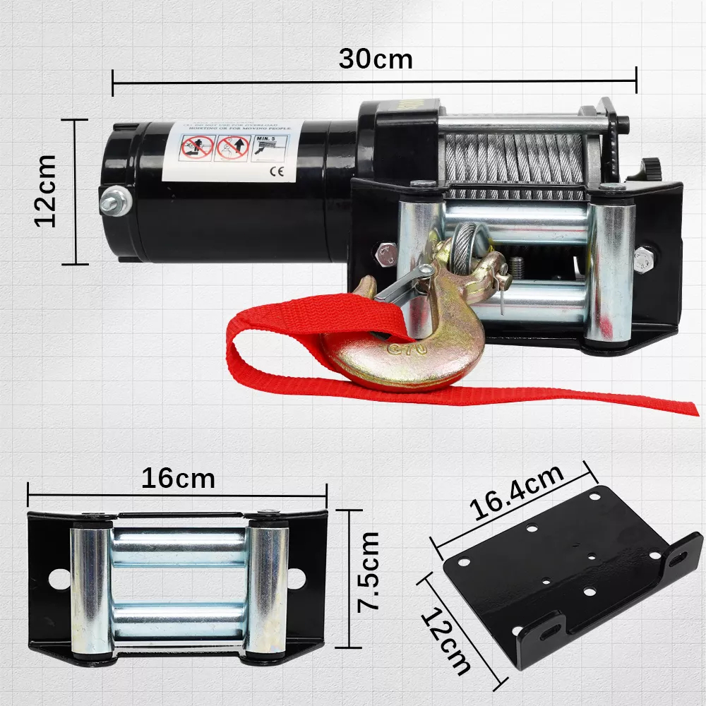 Guincho Elétrico 3000LB/4500LB para Carro | Cabo de Aço 14m | Motor 1KW | Controle Manual/Remoto Kit Completo