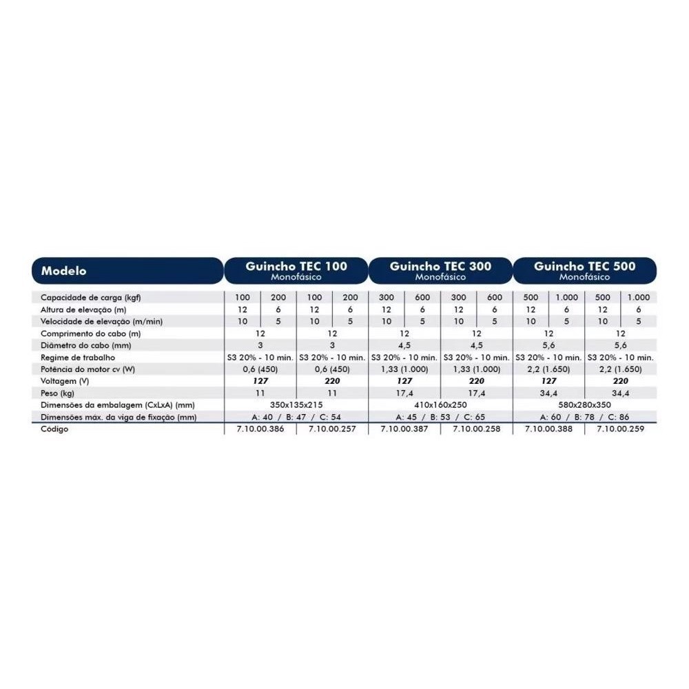 Guincho Tec 300/600kg C/motor Mono S/cacamba 220v Csm