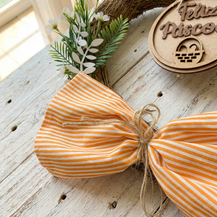 Guirlanda Páscoa Rústica 30cm Enfeite Porta Base Natural Laço Tecido Premium