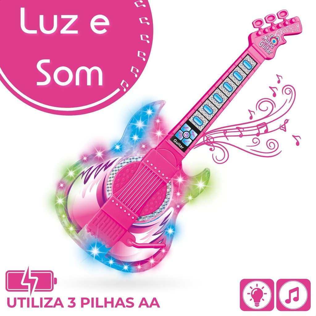 GUITARRA E MICROFONE INFANTIL COM PEDESTAL - ATENTU Deixe a imaginação dos pequenos brilhar com esse kit musical completo! A Guitarra e Microfone Infantil traz luzes e sons incríveis, além de um pedestal para karaokê, permitindo que as crianças cantem suas músicas favoritas ao conectar o celular. CONTEÚDO DA EMBALAGEM: * 1 Guitarra * 1 Pedestal montável * 1 Microfone * 1 Cabo P2 * 1 Alça ESPECIFICAÇÕES: * Luz e som; * Pedestal; * Conexão MP3 ou Smartphone; * Altura ajustável; * Utiliza 3 Pilhas AA (não inclusas); * Certificação INMETRO: 007615/2024 * Marca: ATENTU. DIMENSÃO GUITARRA: - (CxAxL): 19x48x5,5 cm DIMENSÃO PEDESTAL (AJUSTÁVEL): - (CxAxL): 20,5x85x20,5 cm IMPORTANTE: * Garantia: 3 Meses a partir da data de recebimento - para defeitos de fabricação (não cobrimos mau uso). *Todos os Direitos Reservados Em caso de cópia dessa descrição e fotos, os responsáveis serão cobrados de acordo com a Lei (9.610/98) de Direitos Autorais.*
