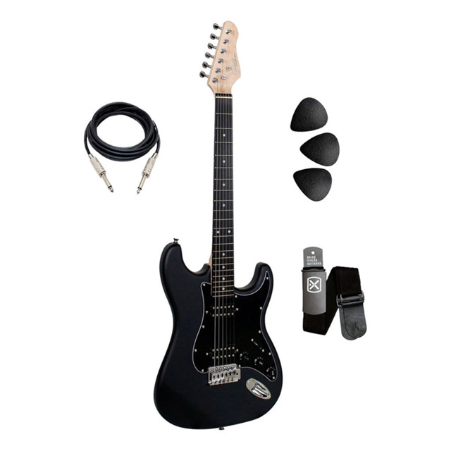É a escolha perfeita para músicos que buscam um instrumento com design moderno, qualidade sonora e excelente custo-benefício. Com um visual arrojado e acabamento sofisticado, essa guitarra oferece uma experiência de tocar confortável e de alto desempenho, seja para iniciantes ou músicos intermediários que buscam evoluir no seu estilo. - ESPECIFICAÇÕES Cor: Satin Black (SBK) ou (BK) Escudo: Black (BK) Corpo: Poplar maciço Braço: Maple satinado com tensor bi-direcional Shape do braço: Formato C Escala: Techwood Comprimento da escala: 648 mm 25,5 Trastes: 22 trastes médio jumbo em alpaca Ponte: Tremolo standard cromada Tarraxas: Blindadas cromadas standard Giannini, 6L Pestana: ABS na cor marfim Largura da pestana: 42 mm 1,65 Captadores: 2 humbuckers cerâmicos Chave: 3 Posições Controles: Volume/Tone/Tone Cordas: Aço .009 Acabamento: Verniz fosco ou Brilhante Tamanho total: 98 cm 38,6 Acompanha: Chaves de ajuste para tensor/ponte, cabo P-10 e alavanca tremolo