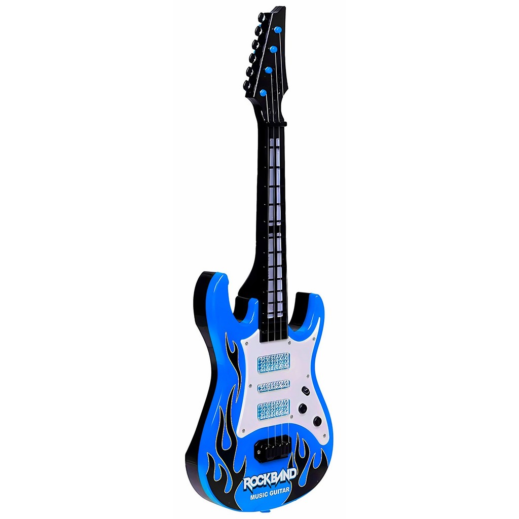 Guitarra Musical Infantil Azul Rock Band Com Luz De LED E Sons Contém Alça