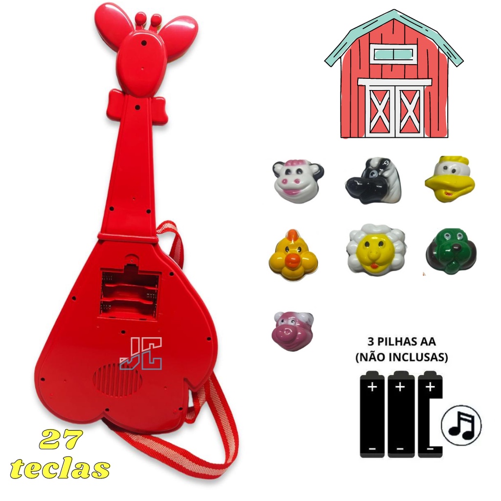 Guitarra Musical Infantil Girafa 27 Teclas Sons E 10 Músicas