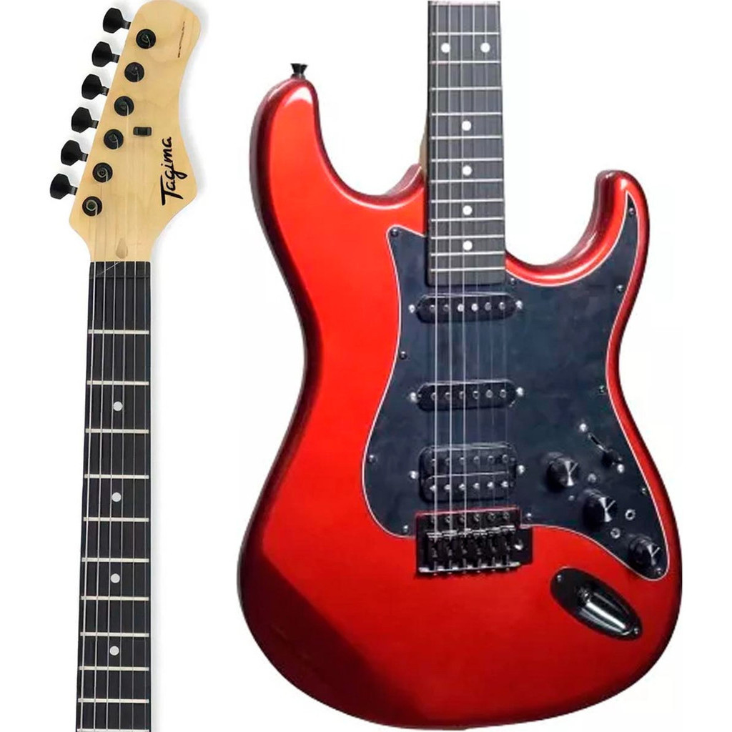 Guitarra Stratocaster Tagima Sixmart Vermelha com Efeitos Mergulhe em um mundo de timbres versáteis e qualidade sonora excepcional! A guitarra Tagima Sixmart é um instrumento que representa uma combinação excepcional de qualidade, versatilidade e acessibilidade. Além de apresentar uma incrível evolução tecnológica em um instrumento tradicional, o que faz da Sixmart uma escolha ideal tanto para músicos iniciantes quanto para músicos experientes que buscam um instrumento confiável e de alto desempenho. ACOMPANHA: -CAPA REFORÇADA EM NYLON 600 -CABO DE 5 METROS -CORREIA -PALETAS Uma das características mais marcantes da Tagima Sixmart é possuir cinco efeitos embutidos e saída para fone de ouvido. Por meio de knobs concêntricos e uma pequena chave de três vias, você pode ativar os efeitos de delay, chorus, reverb, overdrive e distortion. Além de fornecer uma entrada auxiliar P2 e uma saída P2 para fone de ouvido, para você ouvir o som de sua guitarra, limpo ou com efeitos, e ainda junto de seu backing track preferido. O corpo da guitarra é feito em basswood, madeira selecionada que proporciona um timbre rico e equilibrado. Seu design é elegante e ergonômico, tornando-a confortável de tocar durante longas sessões de prática e apresentações ao vivo. A Sixmart é equipada com captadores de alta qualidade que oferecem uma variedade de timbres, permitindo que os músicos explorem uma ampla gama de estilos musicais. Seus captadores single-coil no braço e no meio proporcionam tons nítidos e claros, perfeitos para estilos como o blues e o rock clássico. Além disso, a guitarra possui um captador humbucker na posição da ponte, ideal para distorções pesadas e solos poderosos. Com um seletor de cinco posições, os músicos podem alternar facilmente entre esses diferentes timbres para se adaptar à música que estão tocando. A tocabilidade da Tagima Sixmart também é notável. Seu braço é confortável e rápido, o que facilita a execução de acordes complexos e solos rápidos. Os trastes bem acabados e a escala de qualidade garantem uma experiência de tocar suave e precisa. A Tagima é conhecida por construir guitarras robustas que resistem ao desgaste do uso frequente. Isso a torna uma excelente opção para músicos que planejam levar sua guitarra para a estrada e para aqueles que desejam que seu instrumento dure muitos anos. Com seu som versátil, construção sólida e excelente relação custo-benefício, a Tagima Sixmart é uma escolha excepcional para músicos de todos os níveis de habilidade e estilos musicais. Ela representa o compromisso contínuo da Tagima em oferecer instrumentos de alta qualidade que elevam a música ao próximo nível. Características -Cinco efeitos embutidos e saída para fone de ouvido. -Entrada auxiliar P2. -Estilo clássico Stratocaster, remetendo à guitarras icônicas. -Corpo sólido, favorecendo seu timbre e sustain. -Ótima combinação de madeiras clássicas. -Equipada com captação Tagima na configuração HSS. -Adequada para diversos estilos musicais, como rock, blues, jazz e muito mais. Ficha Técnica MARCA: Tagima MODELO: Sixmart FORMATO: Stratocaster CAPTAÇÃO: Humbucker cerâmico e 2 single coils cerâmicos by Tagima EFEITOS: Delay, Chorus, Reverb, Overdrive e Distortion DESTRO OU CANHOTO: Destro NÚMERO DE CORDAS: 6 PONTE: Tremolo CHAVE: 1 Chave seletora de 5 posições CONTROLES: 1 Volume e 2 Tonalidades MATERIAL DO CORPO: Basswood MATERIAL DO BRAÇO: Maple - Shape C ESCALA: Purple heart TARRAXAS: Diecast COR DO CORPO: Candy Apple ( CA ) COR DO ESCUDO: Black'.