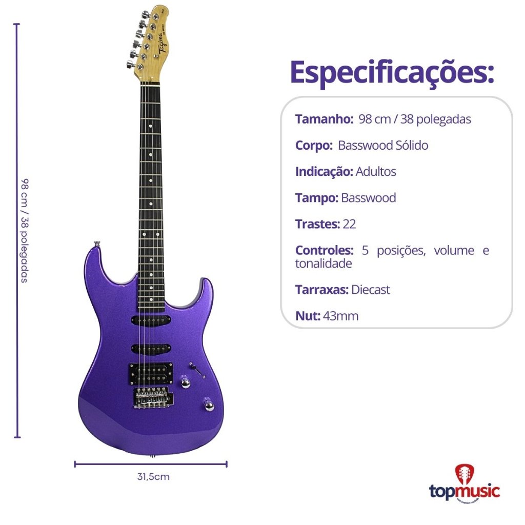 A guitarra de entrada Tagima TG510 é a escolha ideal para quem busca qualidade e versatilidade a um ótimo custo-benefício. Com corpo em basswood e braço em maple com formato C, ela oferece conforto e tocabilidade suave. Equipada com captadores cerâmicos – um humbucker e dois single coils by Tagima – a TG510 proporciona uma ampla variedade de timbres, perfeita para explorar diferentes estilos musicais. Perfeita para iniciantes que buscam um instrumento acessível sem abrir mão da qualidade, acompanhada com ponte tremolo que adiciona um toque extra de versatilidade, possibilitando a criação de efeitos expressivos. Especificações: Modelo: TG-510 Marca: Tagima Corpo: Basswood Braço: Maple Shape c Escala: Tech wood - 22 Trastes - 25.5 polegadas - Raio 9.5 polegadas Nut: Plástico - 43mm Captadores: Humbucker cerâmico e 2 single coils cerâmicos by Tagima Controles: Chave 5 posições, volume e tonalidade Ponte: Tremolo Tarraxas: Diecast Cores: Metallic gold yellow, Black, Candy apple, Metallic purple, Metallic blue, Metallic surf green, White Produto 100% original, somos revendedor autorizado Tagima.