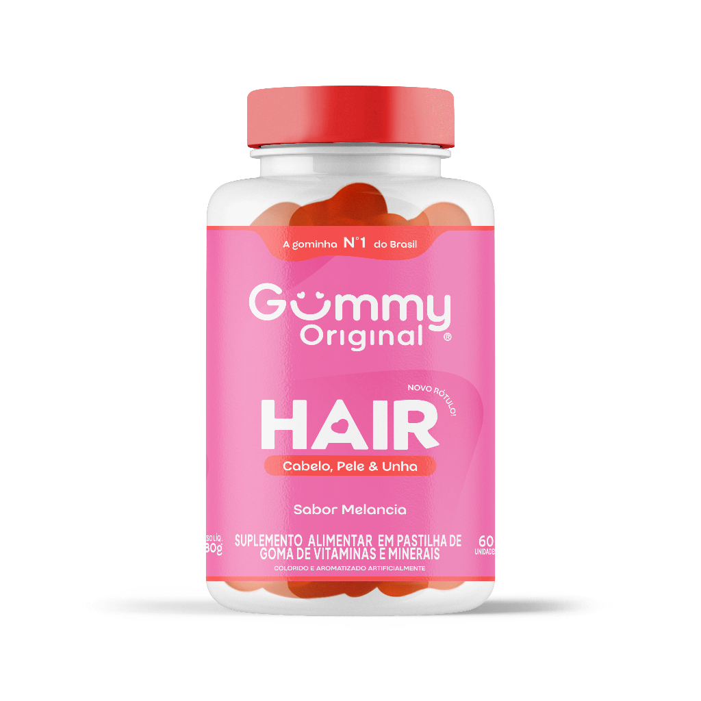 Gummy Original Hair é a primeira vitamina em forma de coração do mundo e te oferece uma forma prática e saborosa de ingerir uma combinação de vitaminas e minerais que ajudam a manter a saúde da pele, dos cabelos e das unhas. A exclusiva combinação de biotina, retinol e outros 10 nutrientes proporciona um cuidado especial para o corpo e para a sua autoestima! Recomendamos a ingestão de 2 gominhas de Gummy Hair Vitamin todos os dias, no horário de sua preferência. É fácil lembrar da sua dose diária com uma gominha tão prática e deliciosa! Importante: Por questões logísticas, o produto pode ser enviado com rótulo de versões anteriores. Garantimos que a formulação permanece inalterada e que o produto está dentro do prazo de validade para consumo.