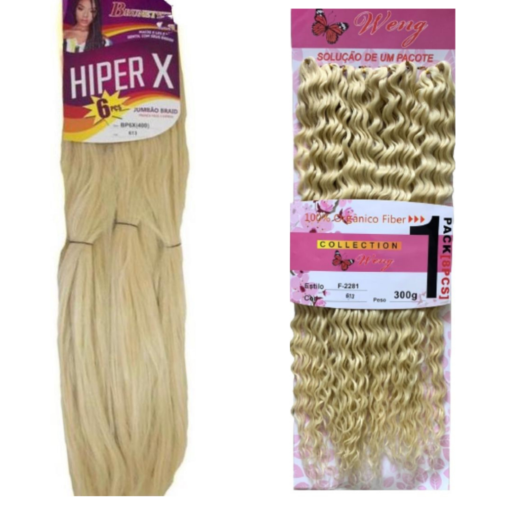 O KIT contém 2 produtos 1 Jumbo 400g (HIPER-X) 1 Cabelo no crochet orgânico 300G Tamanho 70cm os cuidados do modelo é como no cabelo orgânico, lavar a raiz com shampoo sem sal hidratar secar naturalmente usar touca de cetim ENVIO IMEDIATO