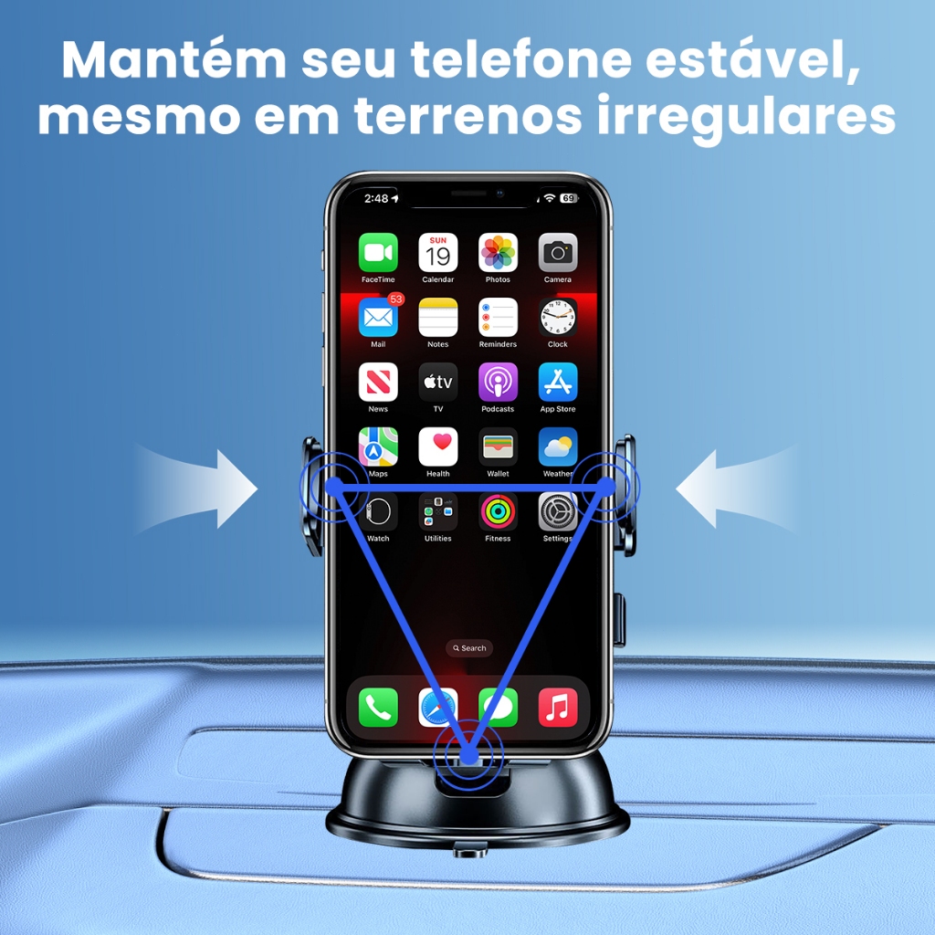 Instalação Versátil: A fixação é feita por uma ventosa de silicone altamente aderente, que pode ser colocada tanto no vidro quanto no painel. Os ajustes possibilitam que o usuário customize o posicionamento da maneira que desejar, deixando o suporte na posição mais confortável e mais fácil de visualizar. O suporte pode ser retirado e recolocado facilmente, pois a ventosa recupera a aderência com água morna. Rápido e fácil de instalar. Rotação de 360°: Ajuste o ângulo de visão conforme desejar, alternando facilmente entre os modos retrato e paisagem para uma navegação mais eficiente. Proteção Superior: Com revestimento acolchoado e superfície de contato em silicone, oferece segurança adicional contra arranhões ao seu dispositivo e ao veículo. Resistente ao Calor: Fabricado em ABS de alta qualidade, suporta a exposição solar direta sem sofrer deformações, ideal para uso em diversas condições climáticas. Design Prático: Leve e compacto, este suporte é perfeito tanto para o uso diário no carro quanto em casa, proporcionando praticidade em todos os momentos. Compatibilidade Universal: Adequado para smartphones de 4 a 6.5 polegadas, garantindo um encaixe perfeito para uma ampla gama de dispositivos. Com nosso Suporte Universal para Celular de Carro, transforme seu veículo em um espaço mais seguro, prático e organizado. Mantenha seu smartphone seguro e acessível, facilitando o uso de apps de navegação e chamadas em viva-voz, sem comprometer sua segurança ou a dos outros. Especificações Técnicas: Marca :H´MASTON Model Name:CJ-80 Material: ABS de alta qualidade Cor disponível: Preto