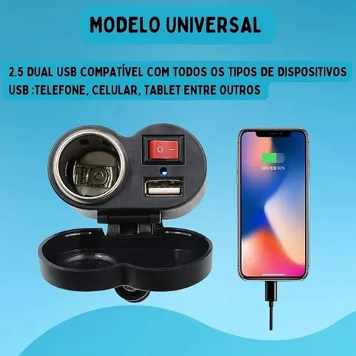 Nunca mais fique sem bateria enquanto pilota sua moto com o Carregador USB Universal para Moto. Este dispositivo é ideal para recarregar seu celular, GPS e outros dispositivos USB enquanto você está na estrada. Com uma montagem segura no guidão e design impermeável, é o acessório perfeito para todos os motociclistas que prezam pela praticidade e segurança. Características Exclusivas: Design à Prova d'Água: Desenvolvido com uma capa de proteção, garante resistência contra entrada de água quando não está em uso, proporcionando confiança em qualquer condição climática. Instalação Facilitada no Guidão: Com um cabo de 130cm, a instalação no guidão da sua moto é rápida e simples. Torne sua moto um centro de conectividade sem esforço. Benefícios Inigualáveis: Recarregue em Movimento: Mantenha seu celular, GPS e outros dispositivos eletrônicos carregados enquanto desfruta da liberdade de viajar. Desempenho Confiável em Todas as Condições: Projetado para resistir às adversidades climáticas, permitindo que você viaje com confiança, independentemente do clima. Estilo e Funcionalidade: Além de sua utilidade, o design elegante complementa o visual da sua moto, adicionando um toque de modernidade.