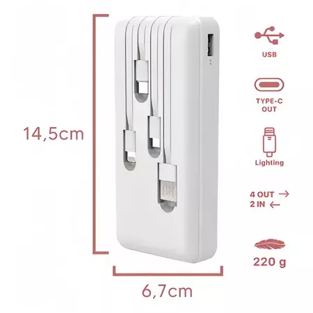 H'maston H966 Carregador Portátil Hmaston 10.000mah C/ 3 Cabos + Saida Usb