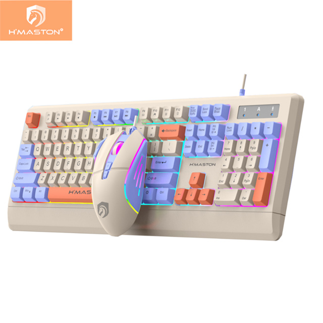 H'maston KB715 teclado Com fio com retroiluminação led e mouse Teclado semimecânico para jogos
