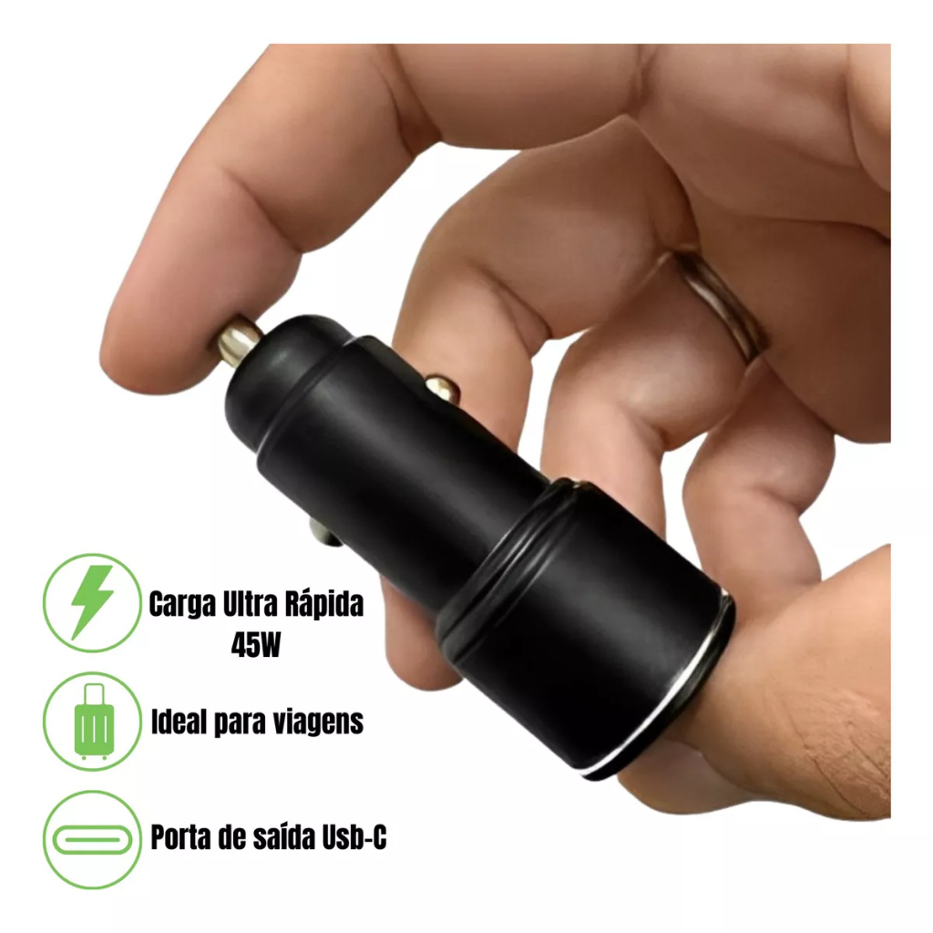 CARREGADOR VEICULAR HMASTON L06L 45W. PD45W Poderoso Output.A saída de porta única Tipo C é de 45W, o que pode triplicar o aumento da velocidade de carregamento, permitindo que você recarregue rapidamente em viagens e viaje. 1. Carregador de carro de porta dupla, pequeno e requintado, shunt inteligente, seguro de usar 2. Carregamento rápido PD25W, Saída de porta única USB de até 20W 3. Proteção e Segurança - Com tamanha saída, é necessário ter uma proteção reforçada para evitar acidentes: proteção contra sobrecarga, controle de temperatura, proteção contra curto-circuito são dos níveis de segurança testados e aprovados desse carregador!! 4. Carregamento estável e contínuo 5. A tensão de entrada 12-24V pode ser aplicada em carros e caminhões 6.Design - Possui uma design simples, porém moderno. Fabricado em plástico ABS, proporcionando a ele resistência e extrema qualidade e eficiência de uso CARREGADPR RÁPIDO CARREGADOR VEICULAR MODELO:L06L ENTRADA:DC 12V-24V SAíDA PD:25W SAíDA USB:QC3.0 20W