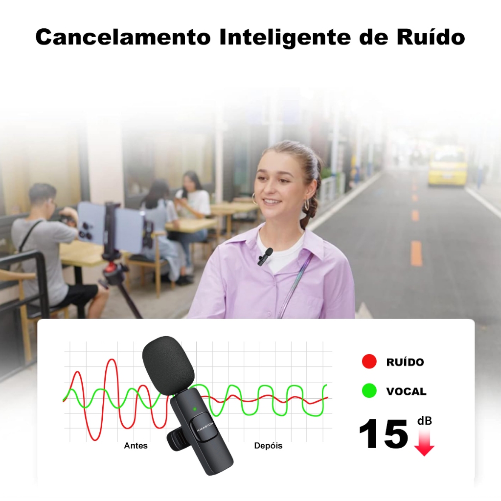 O microfone de lapela é um dispositivo compacto e portátil que oferece alta qualidade de som em situações que a mobilidade é essencial. É ideal para produções audiovisuais, apresentações ao vivo, entrevistas e gravações. Fixado discretamente na roupa, proporciona liberdade de movimento com transmissão sem fio e redução de ruído ao fundo. É a escolha principal de profissionais para áudio de alta qualidade. CONFIGURAÇÃO AUTOMÁTICA E SIMPLES: Este microfone lapela sem fio inovador é extremamente fácil de configurar. Não é necessário adaptador, Bluetooth ou aplicativo. Basta conectar o receptor aos seus dispositivos e ligar o microfone portátil, e eles serão emparelhados automaticamente. CAPTAÇÃO DE SOM OMNIDIRECIONAL: Com uma esponja de alta densidade à prova de vento e um microfone altamente sensível, nosso dispositivo registra com clareza todos os detalhes do som, independentemente do ambiente em que você esteja. Nossa tecnologia de redução de ruído elimina qualquer interferência sonora durante uma gravação, garantindo uma qualidade de som excelente. SISTEMA SEM FIO VERSÁTIL: Este microfone lapela é pequeno e não possui fios. Você pode segurá-lo na mão ou prender na sua camisa, permitindo que você se livre dos cabos e graves vídeos a uma distância maior tanto em ambientes internos quanto externos. BATERIA RECARREGÁVEL PARA TRANSMISSOR E RECEPTOR: O microfone lapela sem fio possui baterias recarregáveis , proporcionando até 3-4 horas de tempo de operação com apenas 1 horas de carregamento. Parâmetro: Marca: H'maston Modelo: MK-10 Corrente de funcionamento: <15mA Consumo de energia em espera: <10uA Tensão de carregamento: DC5V Tempo de carregamento: cerca de 1 hora. Vida útil da bateria: 3--4 horas Protocolo de transmissão: Bluetooth 5.2 Distância de transmissão: cerca de 15m---25m (para frente) Sensibilidade do microfone: -38dB Redução de ruído: Built-in algoritmo de redução de ruído Reverb: Com efeitos sonoros reverberantes "Tipo de plugue do receptor:Tipo-C Tipo de plugue de carregamento: Tipo-C Número de acessórios: receptor*1, microfone*2, cabo Type-C*1 Dispositivos aplicáveis: telefones celulares com interface TypeC"