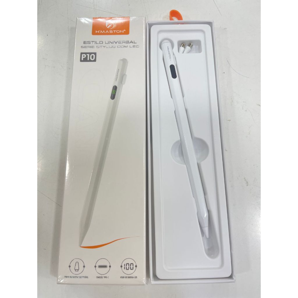 H’MASTON P10 Cabo para carregar + 2 Pontas extras + Caneta Universal com Digital liga e desliga: toque duas na cabeça liga e desliga: toque duas na cabeça liga e desliga: toque duas na cabeça Experimente a precisão e a eficiência com nossa Caneta Touch Screen, projetada para oferecer o máximo de conforto e funcionalidade. Ideal para desenho, design gráfico e tarefas diárias, esta caneta é compatível com iPad, iPhone e dispositivos Android, tornando-se um acessório indispensável para seu dia a dia. Características: Alta Precisão: Ponta fina que proporciona um traço suave e preciso, ideal para desenhos detalhados e escrita fina. Compatibilidade Universal: Funciona perfeitamente com dispositivos iPad, iPhone e Android, garantindo versatilidade e praticidade. Design Ergonômico: Confortável de segurar e usar por longos períodos, perfeita para tarefas diárias e trabalhos criativos. Tecnologia Avançada: Responde rapidamente ao toque, proporcionando uma experiência de escrita e desenho natural e fluida. Multifuncional: Perfeita para design gráfico, anotações, desenho digital, navegação em dispositivos e muito mais. Durabilidade: Feita com materiais de alta qualidade, garantindo longa vida útil e resistência ao uso diário. Especificações: Material: Alumínio de alta qualidade Ponta: Fina e sensível ao toque Compatibilidade: Dispositivos iOS (iPad, iPhone) e Android Cor:Branco Vida útil da bateria: 9 a 11 horas (30 dias em standby) Tempo de carregamento: 80 minutos Dimensões: 17 x 1 cm Vantagens: Conforto e Precisão: Ponta fina que oferece controle exato e conforto durante o uso prolongado. Versatilidade: Compatível com uma ampla gama de dispositivos, permitindo uso universal. Eficiente: Aumenta sua produtividade em tarefas diárias e projetos criativos. Fácil de Usar: Não requer emparelhamento via Bluetooth; basta tocar e usar. Pacote Inclui: 1 x Caneta Touch Screen Ponta Fina 2 x adaptador de ponta de caneta Por que Comprar Conosco? Qualidade Garantida: Produtos selecionados com rigoroso controle de qualidade. Entrega Rápida e Segura: Enviamos rapidamente e com cuidado para garantir que você receba seu produto em perfeito estado. Satisfação do Cliente: Atendimento ao cliente dedicado para responder todas as suas perguntas e resolver qualquer problema. Transforme sua maneira de trabalhar e criar com nossa Caneta Touch Screen. Compre agora e descubra a diferença que a precisão e o conforto podem fazer!