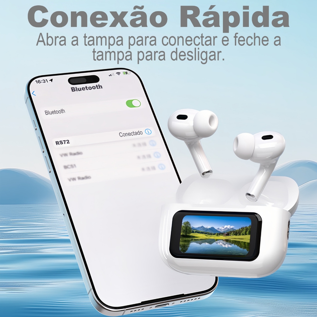 1.Conexão Estável: O Fone de ouvido Tws sem fio com tela touch adota chip Bluetooth 5.4, velocidade de conexão rápida e estável, baixa latência, conexão de emparelhamento automático após a abertura da tampa. 2.O corpo é equipado com tela LCD touch personalizavel,O fone de ouvido Tws Bluetooth 5.4 sem fio com tela touch vem com função de toque, que pode fazer operações rápidas, como atender chamadas, alternar músicas, etc. 3.Otimização inteligente de redução de ruído, uma viagem mais tranquila e confortável. Tecnologia de redução de ruído digital totalmente adaptável e centralizada, responde de forma inteligente ao ambiente e a diferentes situações. 4.Bateria de Longa Duração: Tanto o fone de ouvido Bluetooth quanto seu estojo de carregamento possuem baterias embutidas de grande capacidade, que têm uma bateria de longa duração e garantem música ininterrupta. 5.Fone sem fio com caixa de carregamento touch screen, mude suas músicas diretamente na caixa de carregamento sem usar o celular. 6.O design compacto e requintado facilita o transporte e pode ser usado durante viagens ao ar livre, esportes ou uso diário. Características: Cancelamento de Ruído: Desfrute de som ambiente inteligente, bloqueando ruídos externos para chamadas e músicas com qualidade superior. Microfone de Alta Qualidade: Realize chamadas nítidas e sem interferências, garantindo comunicação clara em qualquer ambiente. Função Touch: Controle suas músicas, chamadas e volume diretamente no fone de ouvido com um simples toque. Distância de Comunicação: Até 20 metros, permitindo mobilidade enquanto ouve suas músicas ou realiza chamadas.