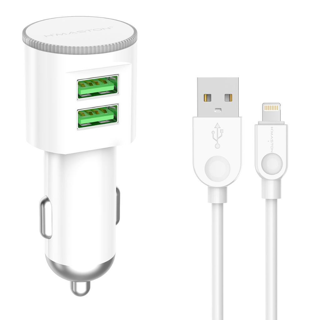 H'Maston S15 CARREGADOR VEICULAR 2 ENTRADAS USB FONTE TURBO 4.1A V8 IPHONE/IOS(LIGHTING)TIPO-C