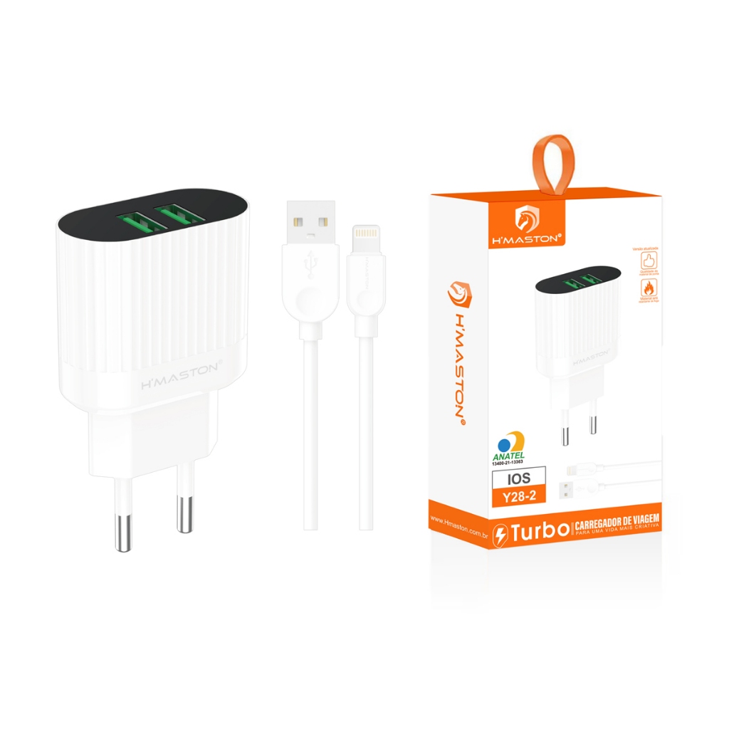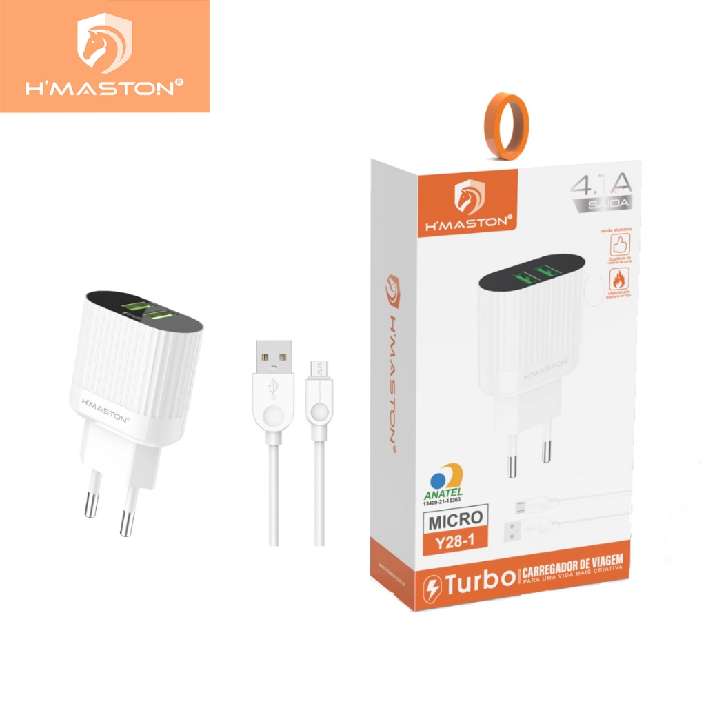 H'maston Y28-1 Carregador Turbo 2 USB Com Cabo de Carregamento V8 ANATEL Original Garantida