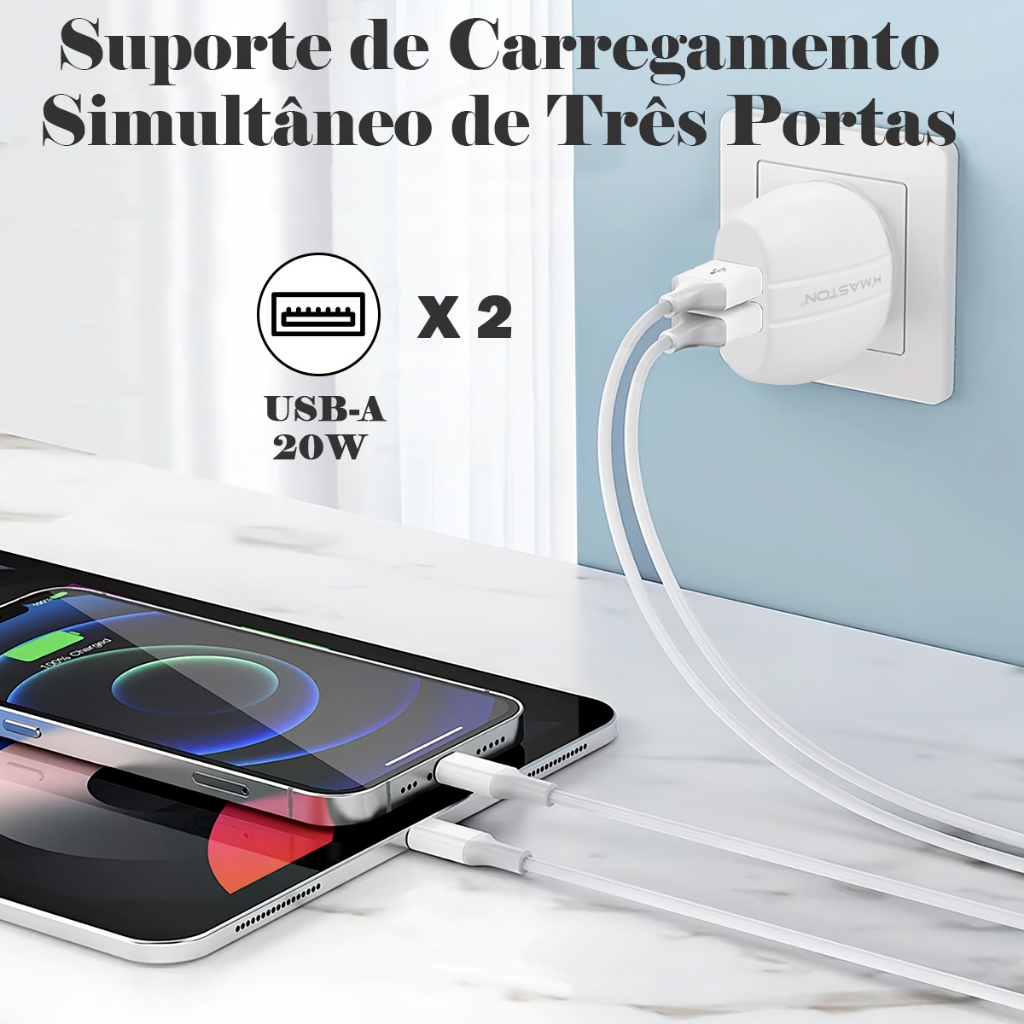 H'maston Y51 Fonte Carregador Turbo Original 20w 2usb 4.1A 2Portas USB Com Cabo