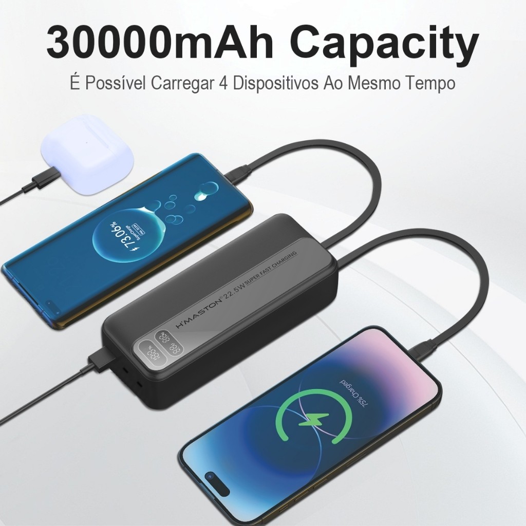 H'maston YD-34 Carregador Portátil Power Bank 30000mah 22.5W PD,Display da Fonte de Alimentação LED