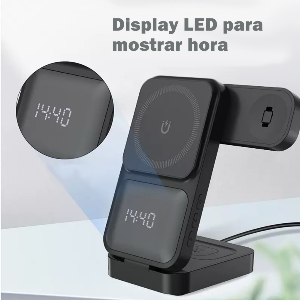 H'maston YD-76 CARREGADOR 3-EM-1 INDUTIVO DE MESA SEM FIO display LED Para mostrar hora dobrável que