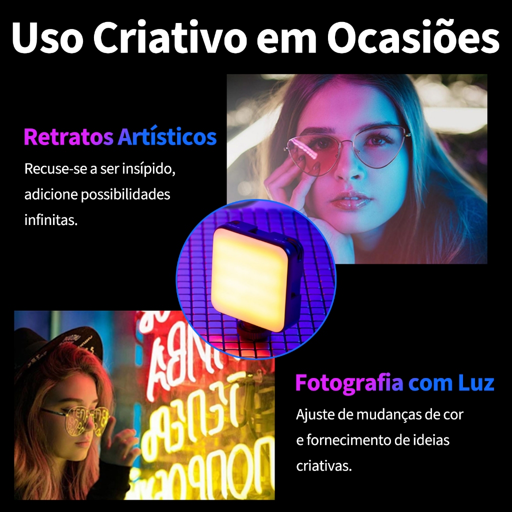 Aprimore sua experiência com a mais nova adição à sua coleção de equipamentos: o incrível Clipe de Luz de Preenchimento Multifuncional! Projetado cuidadosamente para superar todas as suas expectativas, este clipe é a chave para iluminação perfeita em qualquer situação. A luz LED possui 3 modos de luz ajustáveis, que podem ajustar luz quente, luz branca e luz colorida RGB. O LED RGB multifuncional pode ajustar rapidamente o valor da temperatura da cor em apenas um clique. As luzes LED para gravação de vídeo com clipe tornam a luz auxiliar mais suave, mais brilhante e mais uniforme. A luz de preenchimento profissional não é ofuscante e pode ser alternada livremente entre luz fria e luz quente. É equipado com clipe de aba duplo, que pode ser fixado em celulares, tablets, computadores, etc. em qualquer lugar que você quiser. É simples de operar e pode ser usado rapidamente. É um item essencial na sua bolsa fotográfica. A mini luz LED possui uma bateria de lítio recarregável de 800mAh integrada e uma conexão Tipo-C que pode ser usada durante o carregamento. Esta fonte de luz ajustável é ideal para gravação de vídeo ou fotografia e é perfeita para selfies em qualquer lugar. O design compacto permite que a luz de vídeo LED caiba no bolso ou na mochila, facilitando o transporte e o uso em qualquer lugar.