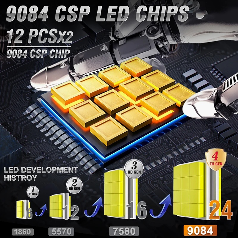 2peças LED Especificação do produto: Lumen:1000000Lm/par Potência de potência: 1200W/par Tensão de tensão: 12V Temperatura de cor de cor de 6000K Tensão de operação do funcionamento: DC 9-12V Chip led led de Chip: com Chip csp led 9084: com Chip csp led Material de alumínio de aviação 6063 material: material de alumínio de aviação 6063 Dissipação de calor de quatro tubos de cobre + ventilador mini + peças de alumínio Temperatura de operação:-40℃~+150℃ Feixe: H4 Farol único H7 H8 H9 9005 HB3 9006 HB4 9012 HIR2 À prova d'água IP68 Vida útil da vida útil: >50000hrs Função de canbus forte, sistema de canbus forte, antiemc Design do corpo do plug & play: design do corpo do corpo do Canbus: design do corpo do plug & play Característica do Característica do Característica: 1. Função de dissipação de Super calor: dissipação de calor de resfriamento líquido de tubo de 4 cobre recém atualizada, equipada com um ventilador giratório de alta velocidade e um corpo da lâmpada de alumínio, que dissipa muito rapidamente o calor, então não há necessidade de se preocupar com Perigo causado pelo superaquecimento. 2. Chip Super grande: O chip recém- atualizado 9084csp tem um campo de visão ultra-largo e design de alcance ultralongo: o chip recém- atualizado 9084csp tem um campo ultra-ampla de visão e design de alcance ultralongo, tornando a condução à noite mais seguro! 3. Potência super penetrante: As luzes super brilhantes podem ter forte poder penetrante em dias chuvosos, clima neblina e dias de neve, e você pode dirigir com confiança mesmo em tempos chuvosos, tempo de neblina e dias neve, e pode dirigir com confiança mesmo em climas especiais! Princípio de dissipação de calor: 1.Dissipação de calor líquido de quatro tubos de cobre Ventilador de corrida de alta velocidade de 2,18000 RMP de 2,18000 RMP 3.Controle de temperatura inteligente da unidade externa Alumínio de aviação 4.6063 de alumínio de aviação Aplicação: Carros/automóveis/motocicleta/truck/bus Garantia de 3 anos Lista de embalagem: 2 peças lâmpadas de farol Led