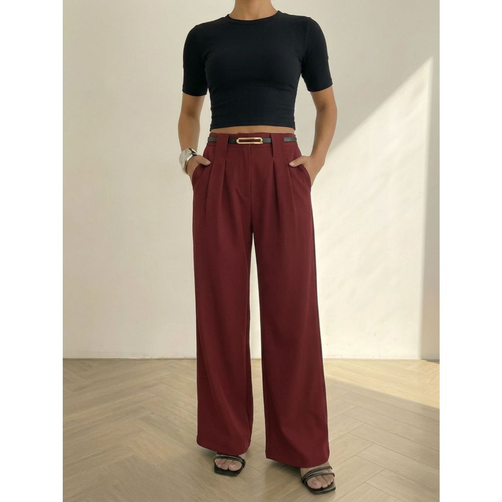 H944 Calça Feminina, Pantalona, Social, Cintura Alta, Com bolsos nas laterais, Acompanha Cinto