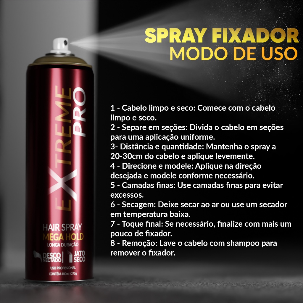 | Hair Spray Fixador Laque Capilar Extreme Pro Alta Fixação este produto | R$ 38,90 | 22% | 4.9/5 | 11 |