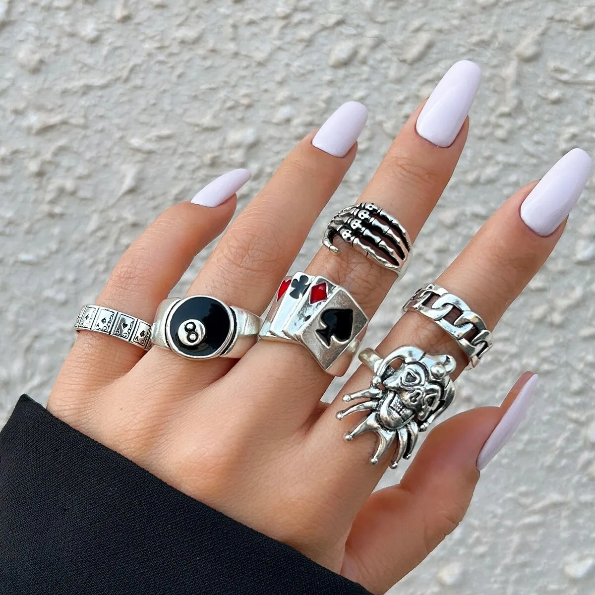 Halloween 6 Peças Conjunto De Anel De Pôquer Punk Cassino Para Homens Mulheres Caveira Gótica Fantasma Joias Góticas Pre