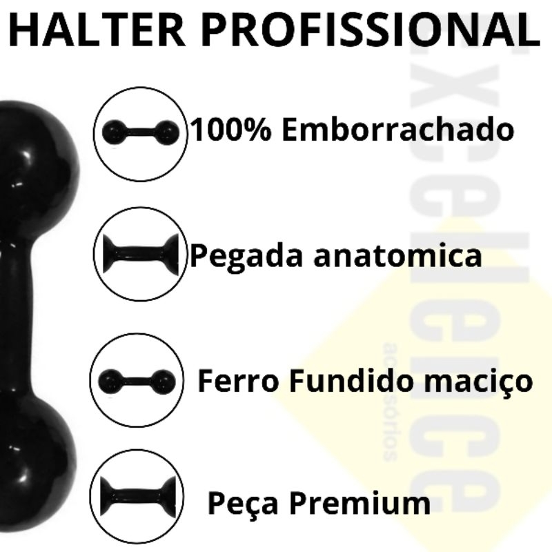 HALTER 1UNIDADE 2 KG OU Halter 2 kg cada total do par 4 kg ESCOLHA O SEU O Halter é ideal para quem busca exercitar e fortalecer a musculatura dos membros superiores ( braços, ombros, cotovelos e punhos). Confeccionado pensando no conforto do usuário, o revestimento, além de possuir a matéria prima de melhor qualidade, passa por um processo rigoroso que proporciona aderência da borracha ao ferro, garantindo melhor resistência e evitando rachaduras e descascamento