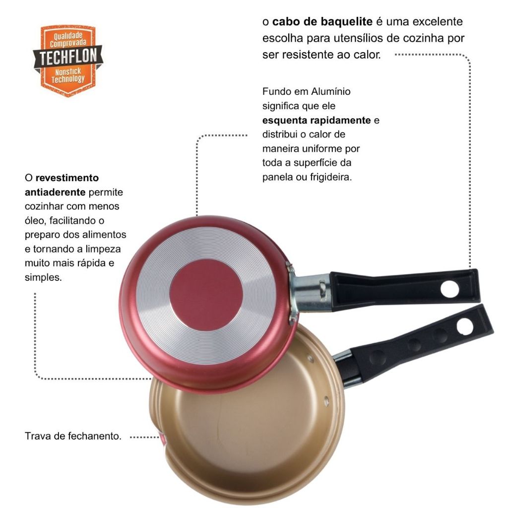 Prepare seus lanches favoritos com muito mais praticidade e sabor! A hamburgueira antiaderente é ideal para quem ama fazer hambúrgueres e sem respingo. Com design moderno e funcional, esta frigideira dupla permite virar o alimento com facilidade, garantindo um cozimento uniforme dos dois lados, resultado digno de chef na sua cozinha! Produzida em alumínio de alta qualidade com revestimento Techflon, a frigideira é resistente, durável e dispensa o uso excessivo de óleo, proporcionando refeições mais leves e saudáveis. Seu fundo termodifusor distribui o calor de maneira eficiente, evitando que o alimento grude ou queime. Já os cabos em baquelite, com toque ergonômico e seguro, resistem à alta temperatura, garantindo mais conforto durante o uso. Compacta e elegante, é perfeita para cozinhas modernas e para quem busca praticidade no dia a dia. Fácil de limpar, a frigideira dupla para hambúrguer torna o preparo rápido e divertido, ideal para quem gosta de reunir a família e saborear receitas irresistíveis sem respingo e com todo o sabor preservado. Transforme sua rotina culinária e experimente o prazer de cozinhar com mais estilo e eficiência. Ficha Técnica Medidas e dimensões: Altura: 3,7cm | Largura: 14cm | Comprimento: 26cm | Capacidade: 0,45L Material do corpo: Alumínio Material da alça/cabo: Baquelite Marca: Alumínio Nacional Fabricante: Alumínio Nacional Garantia: 90 dias Composição: 01x Frigideira Dupla Hamburgueira