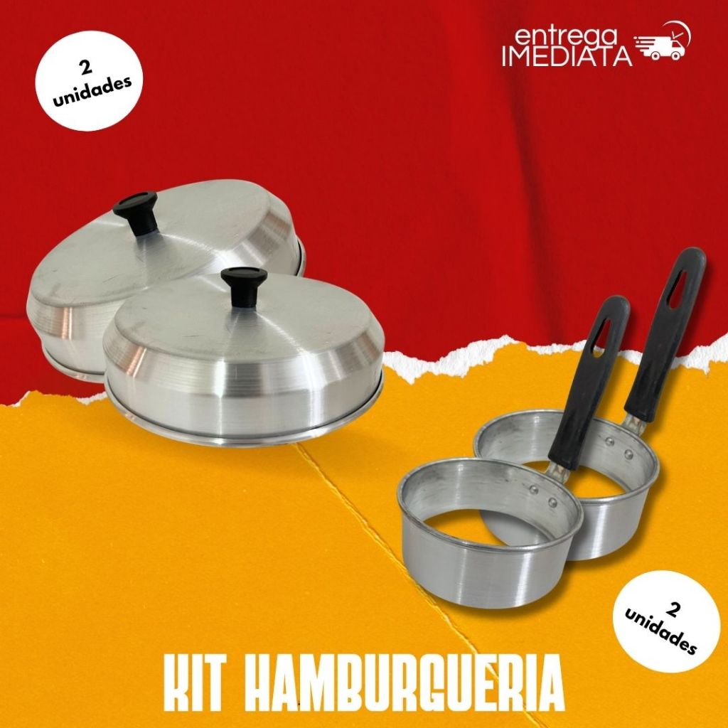 Hamburgueria, abafador de hamburguer, modelador de ovos, abafador e modelador de ovos.