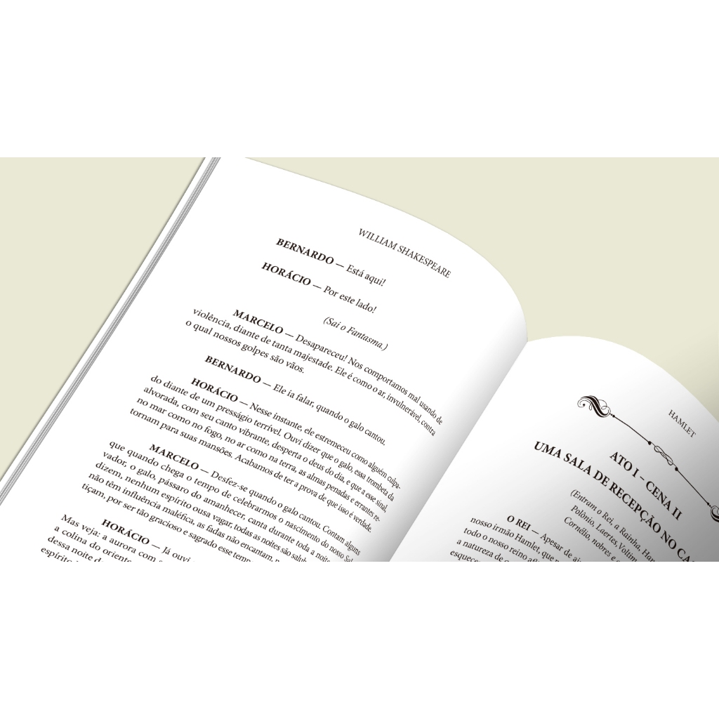 "Hamlet" é uma das mais renomadas tragédias escritas por William Shakespeare. A trama se desenrola em torno do príncipe Hamlet, que é confrontado com dilemas morais, intriga familiar e o peso da vingança. Após a morte de seu pai e o casamento de sua mãe com seu tio, Hamlet é assombrado pelo espectro de seu pai, que clama por vingança. O livro é uma exploração profunda de temas como loucura, traição, justiça e a natureza da existência humana. Com seus monólogos intensos, personagens complexos e reviravoltas na trama, "Hamlet" permanece como uma obra-prima que continua a cativar leitores e a inspirar inúmeras interpretações e adaptações ao longo dos séculos.