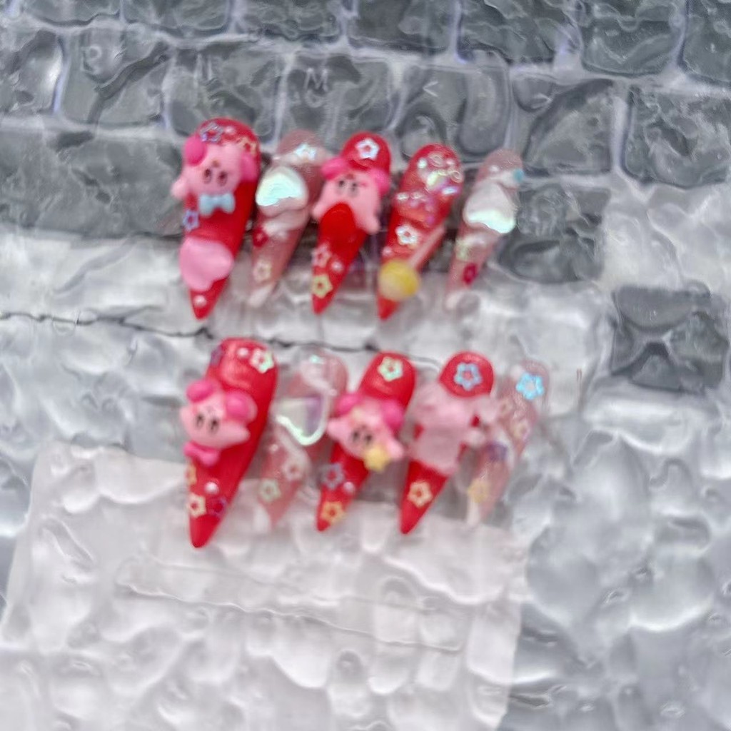 [HANDMADE] Prego artificial princesa estilo Kirby pêssego rosa Y2K doce e fresco Babes fototerapia unhas unhas reutilizáveis e removíveis