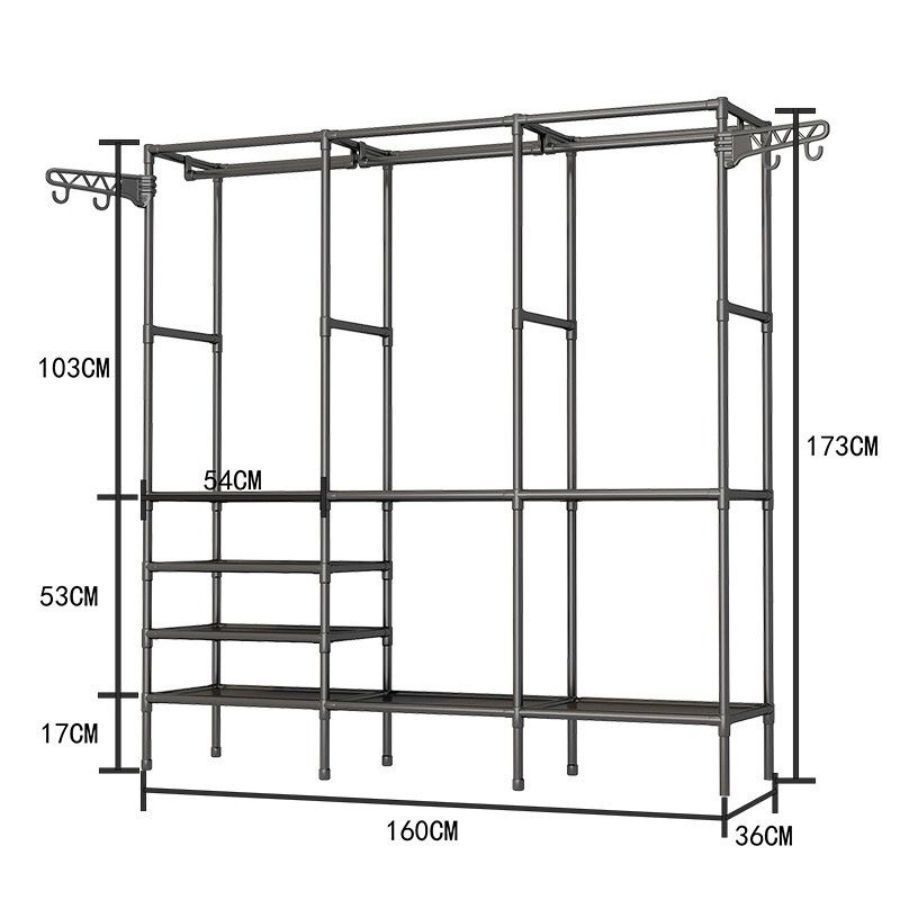 haosin Arara De Roupa Preto Cabideiro De Chão Sapateira Rack Organizador Multiuso Aço Inox