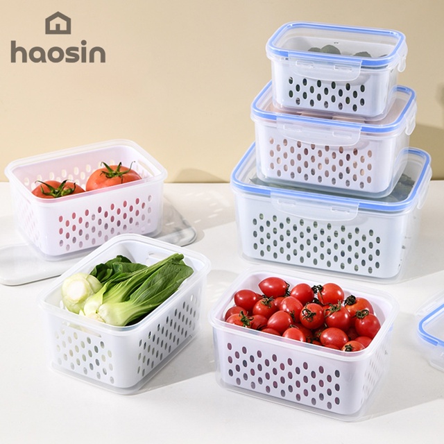 haosin Kit 3 Organizadores Potes Hermetico para Geladeira 850ML/1750ML/3300ML Alimentos e Vegetais