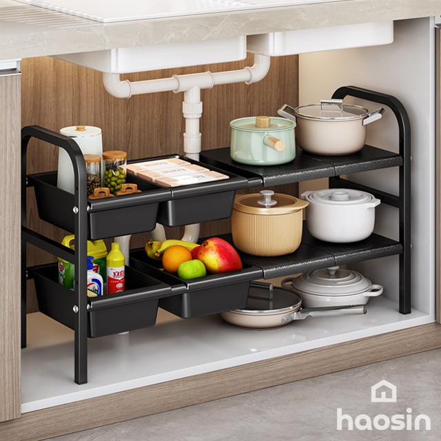 haosin Prateleira Retrátil Para Pia , Organizador De Panelas Ajustável , Rack Multiuso Sob O Armário