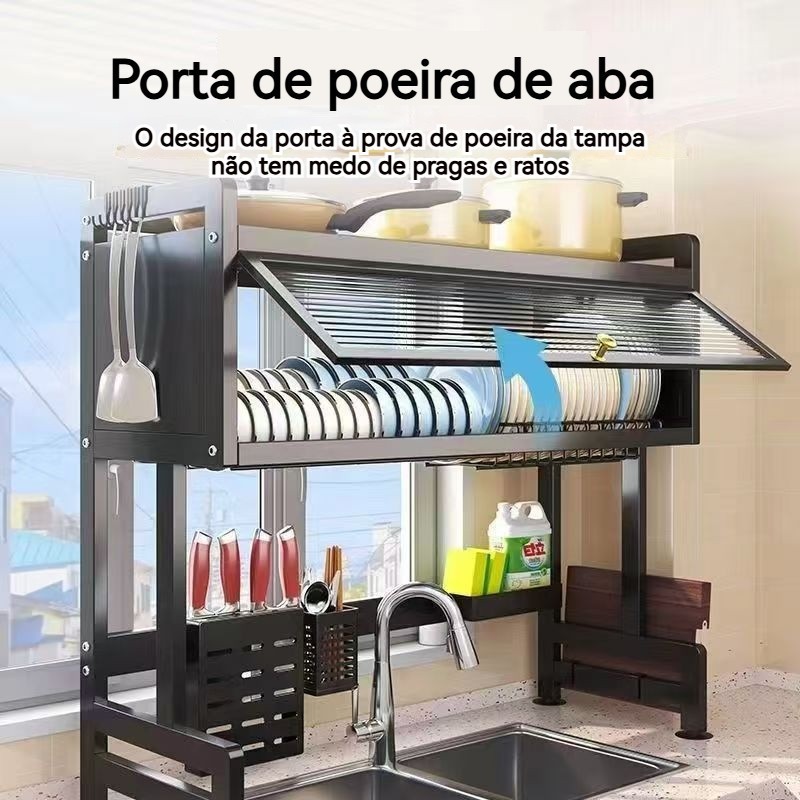 Este prato de cozinha possui design flexível que é fácil de mover, economizando espaço sob a pia ou no bancada. Aço carbono, pode ser personalizado para seu gosto de fácil organização. Acomoda uma variedade de pratos e otimiza espaço acima da pia Os componentes se encaixam facilmente para facilitar o rearranjo e a limpeza dos componentes. *Fácil instalação *Fácil *Inclui hardware de montagem. *Características ventosas para fixação em superfícies lisas. Características do: *Armazenamento conveniente de bancada. Contabilidade. *Indicado sem perfuração. Apoio de pé para colocação na pia. Capacidade de carga até 30 kg. Acabamento exposto. Altura: 77 cm Largura da Largura: 30 cm Comprimento do Comprimento: 65 cm Acompanha: Acompanha: 6 ganchos 4 tapetes antiderrapantes Porta Faca de 1 Porta Faca Dispensador de 1 detergente - 1 detergente 1 Tábua de corte 1 suporte para pauzinho