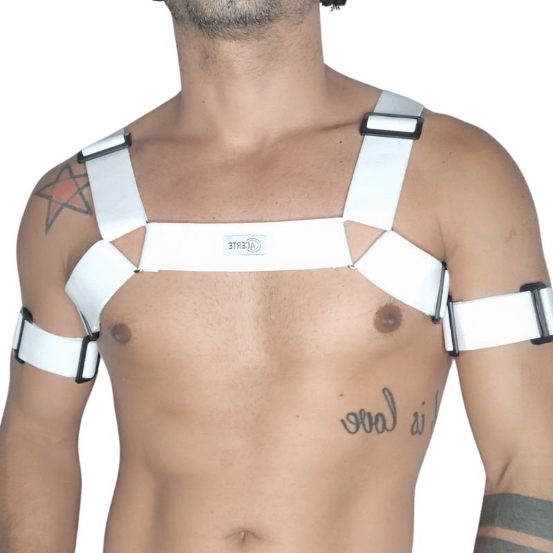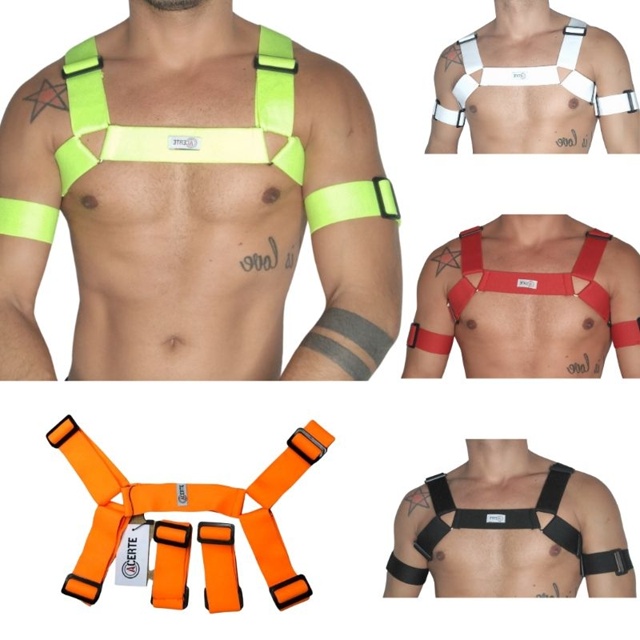 Harness arreio com regulagem. P ao EXG. Acompanha 2 braçadeiras com regulagens. Largura do elastico de 3,5cm a 4cm.