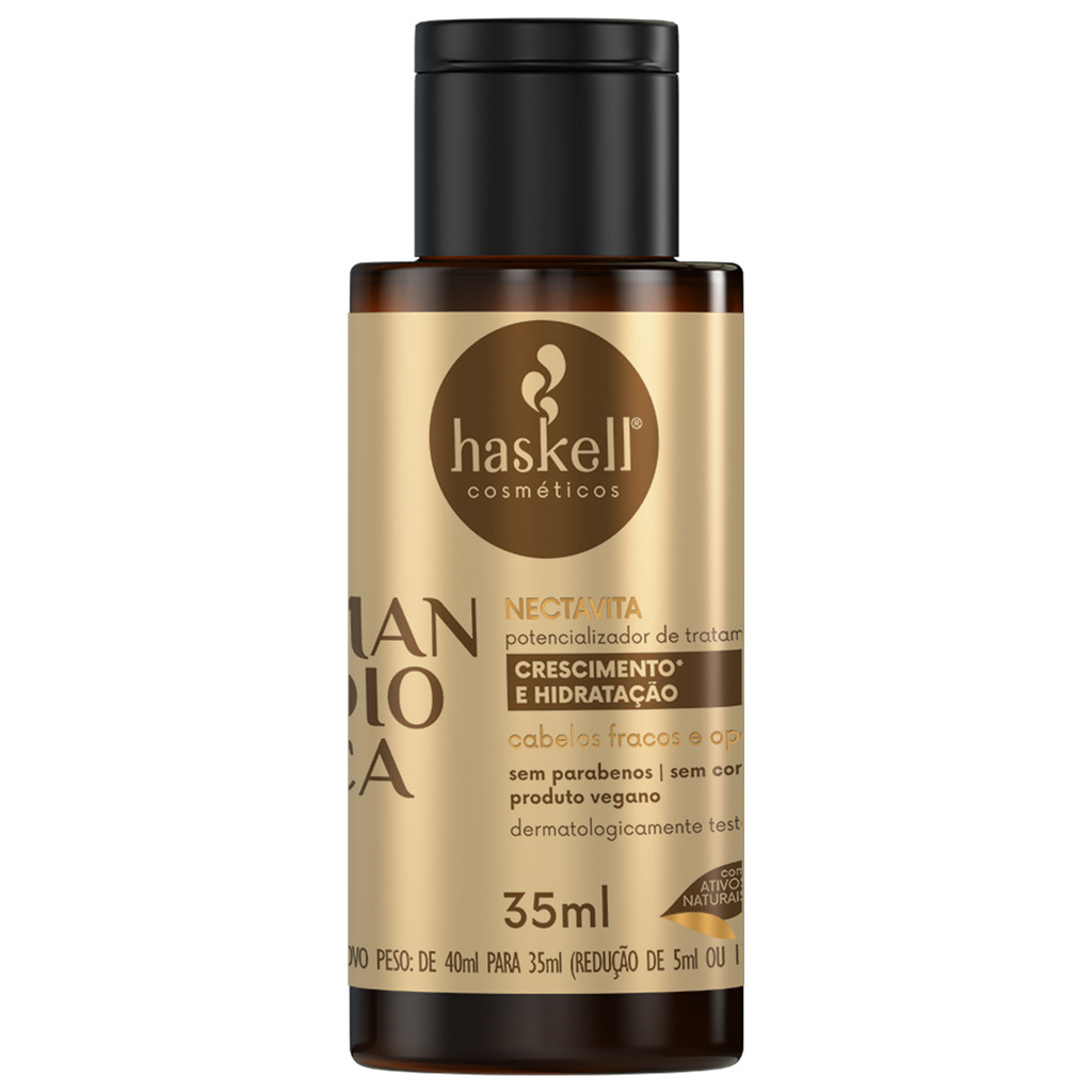 Desenvolvida com a mais alta tecnologia aliada a ativos exclusivos como a mandioca, a linha é rica em vitaminas e nutrientes essenciais ao crescimento dos fios. Rica em vitaminas e nutrientes essenciais ao crescimento dos fios. Promove hidratação profunda e fortalecimento dos fios. Age no alinhamento das cutículas promovendo brilho intenso aos cabelos opacos. A principal função é hidratar e dar força, o mesmo é indicado para cabelos opacos e ressecados. Produto Original. Contém no kit: Nectavita 35ml Haskell Mandioca Sachês Sortidos
