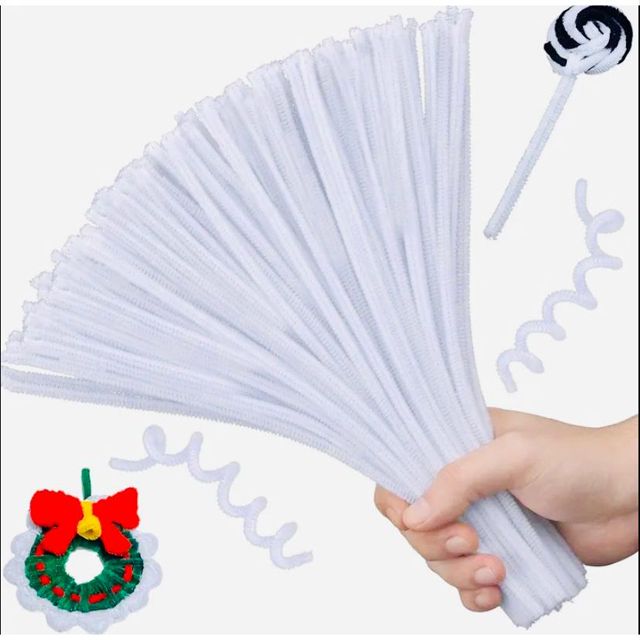 Haste De Chenille branca 30cm 100/ 200 Unidades Para artesanato, Decoração, Limpador de Cachimbo, Cabelo Maluco
