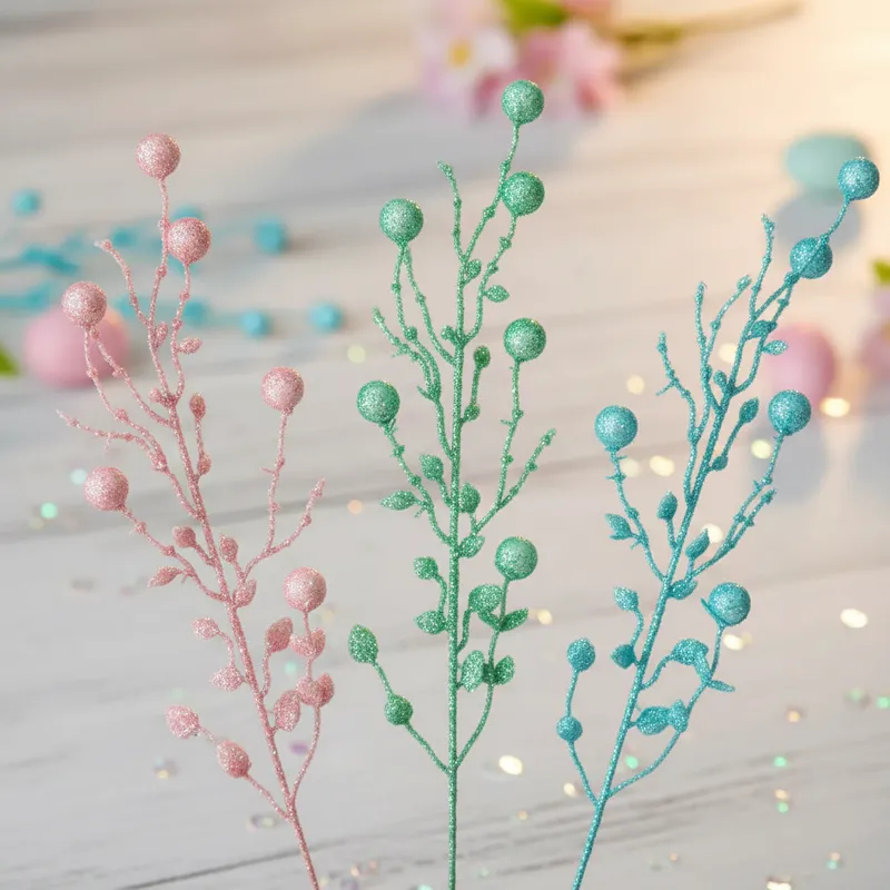 Haste Decorativa de Páscoa com Glitter 37cm Galho Decorativo para Arranjos Mesa Posta Guirlanda e Decoração